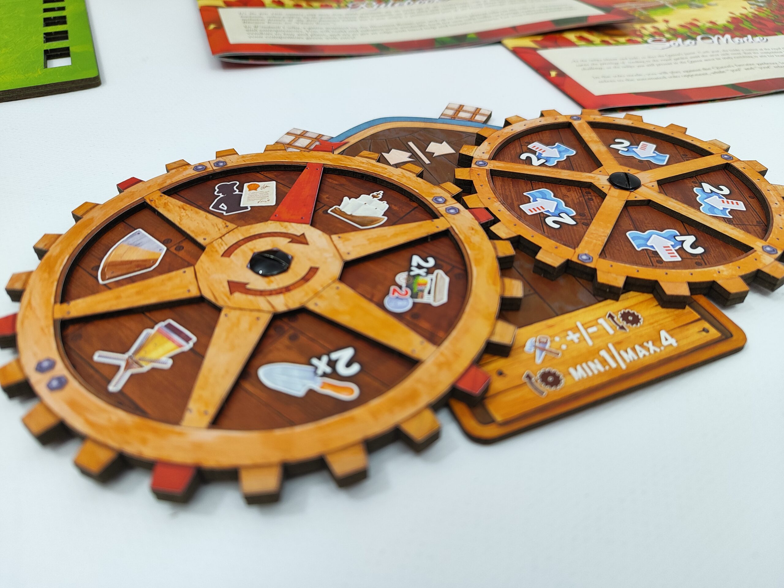 • Lasera umożliwiającego wycinanie dowolnych, nawet najbardziej skomplikowanych i ażurowych kształtów, których nie da się wyciąć nożem. Zaletą tego rozwiązania technologicznego jest swoboda projektowa (np. żetony w kształcie smoków, skomplikowane liczniki), jednakże wypalanie laserem wiąże się z powstaniem osadu (opalenizny) na krawędziach elementów, który należy oczyścić chusteczką po otrzymaniu przesyłki.