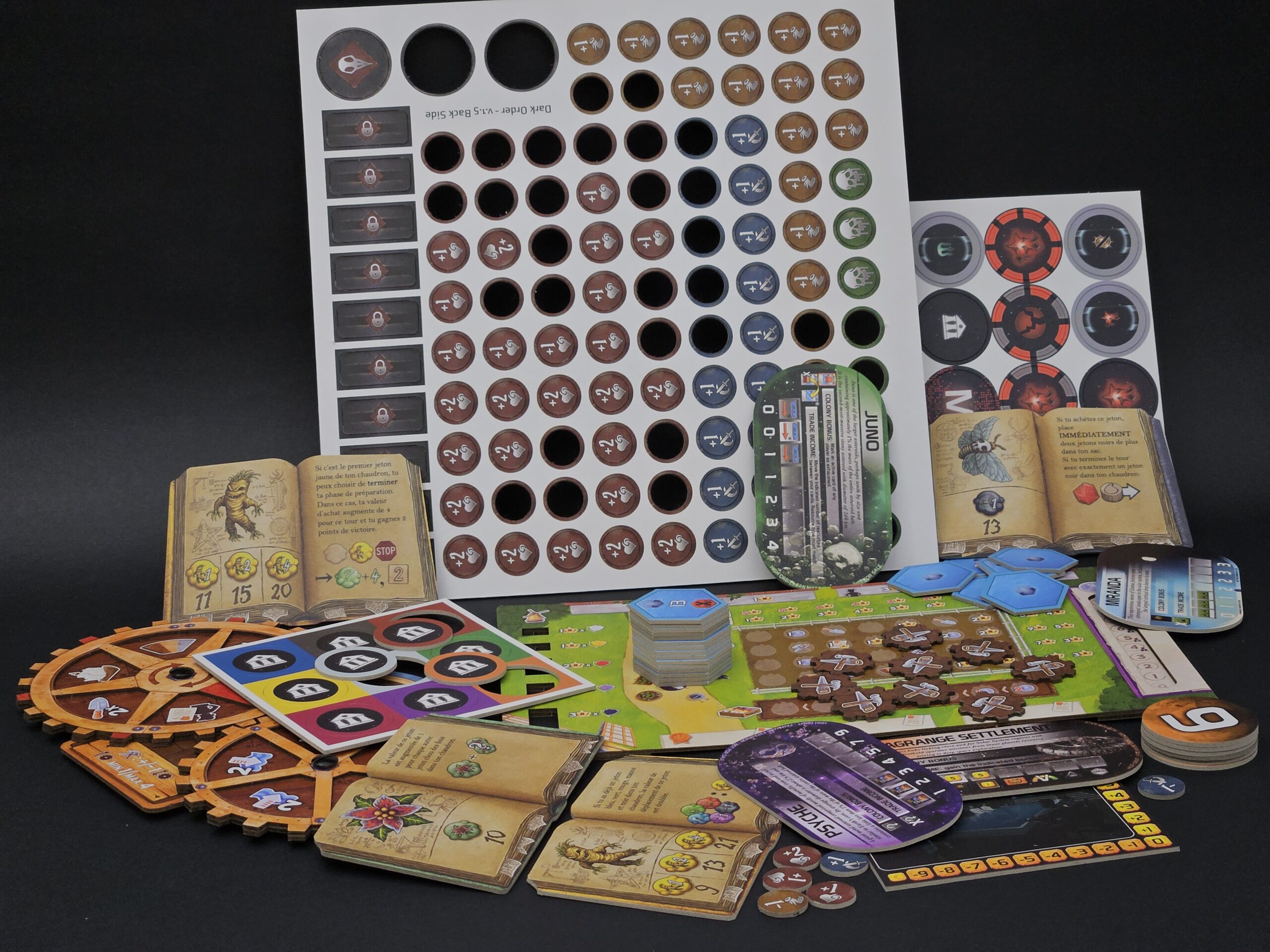 W ten sposób możesz zamówić druk żetonów zasobów, waluty, punktów zwycięstwa, planszetek graczy, również takich z miejscami na kostki, kafli terenu (hexów) czy znaczników „rare/legendary” (z folią holograficzną).