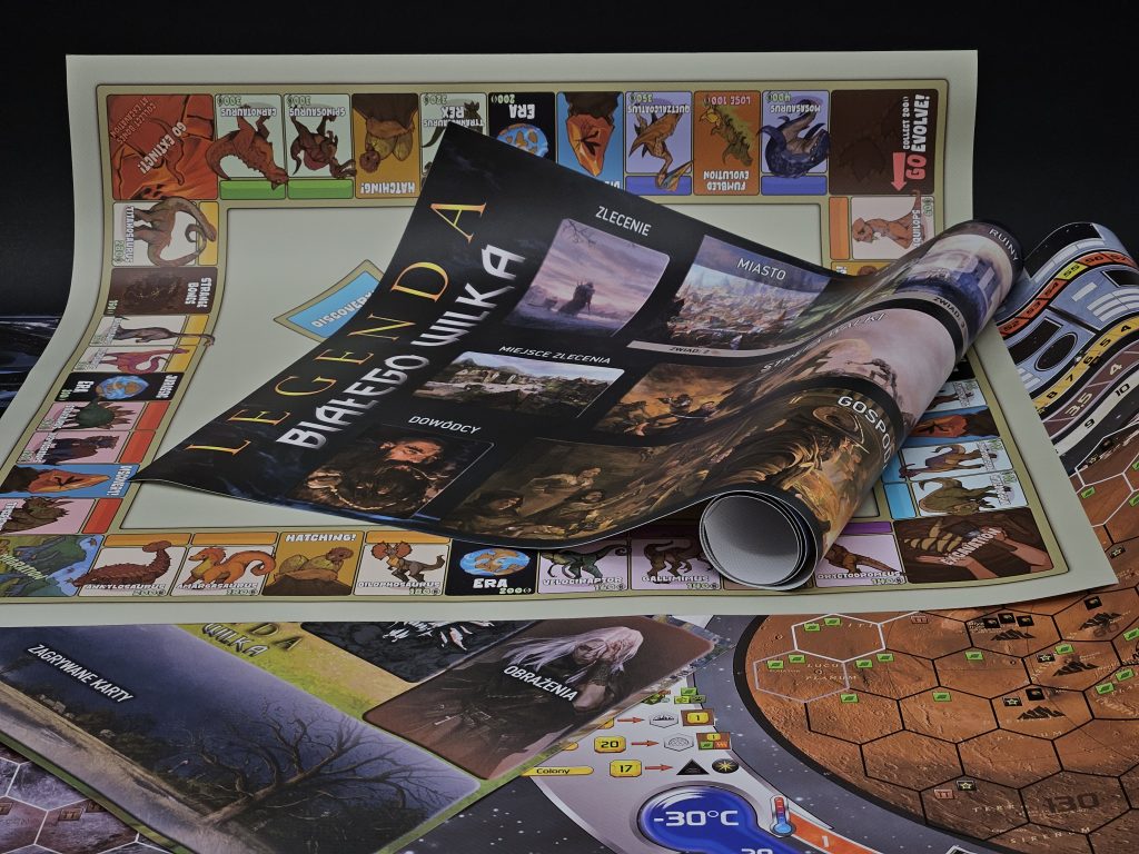 W nakładzie od 1 sztuki produkujemy karty, playmaty, żetony, planszetki oraz instrukcje.